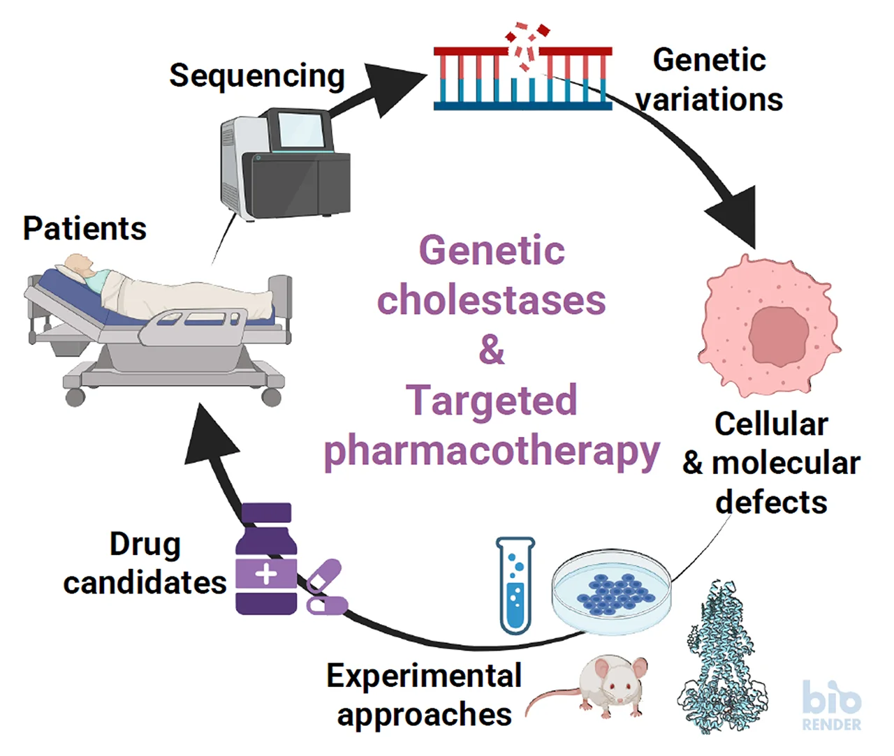À ce jour, plusieurs centaines de mutations des gènes encodant ces transporteurs ABC ont été identifiées chez des patients atteints de maladies hépatiques, dont une grande partie n’a pas été caractérisée aux échelles moléculaire et cellulaire. Les mutations d’ABCB4 et d’ABCB11 sont à l’origine de maladies hépatiques rares dont les formes les plus sévères sont les cholestases intrahépatiques progressives de types 2 et 3 (PFIC2/3). Les PFICs se caractérisent par une cholestase (arrêt ou diminution de l’écoulement de la bile), un ictère (jaunisse) et un prurit (démangeaisons) modéré à sévère, et évoluent le plus souvent vers une insuffisance hépatique, nécessitant alors une transplantation hépatique.